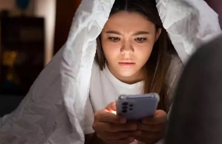 Adolescente na cama mexendo no celular. — Foto: Freepik