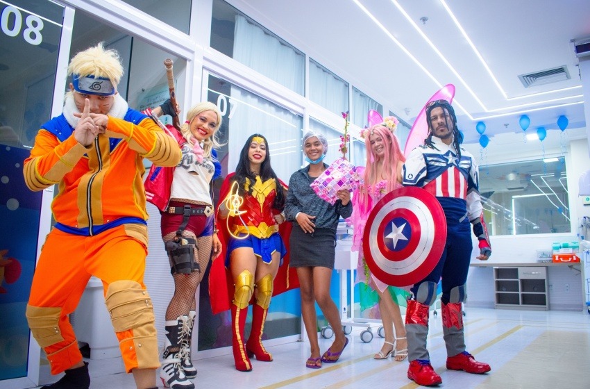 Super-heróis e personagens animados animam a Semana da Criança com ações lúdicas e emocionantes, trazendo conforto e esperança para os pequenos em tratamento
