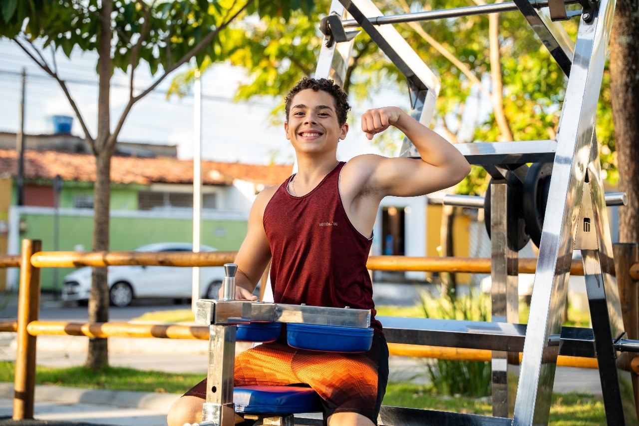 “Moro no bairro do Barro Duro e tenho que andar um quilômetro e meio para chegar aqui. Antes só conseguia treinar em casa; agora, depois da reforma da praça, posso começar a treinar em uma academia e vale à pena cada metro andado, determinação é tudo!”, disse Rafael de Araújo, 15 anos, mostrando como a presença da academia ao ar livre amplia oportunidades para jovens da região.
