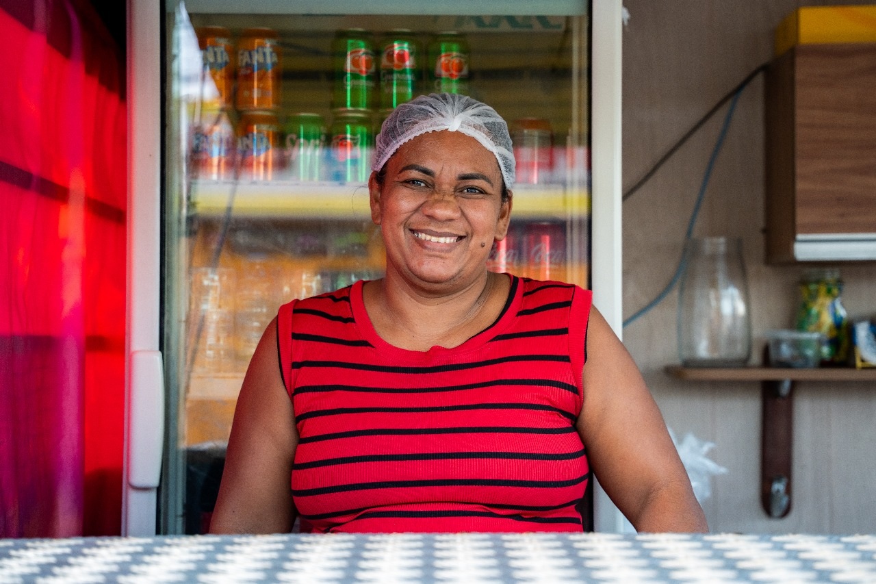 Cícera da Silva no seu ponto de venda de acarajé na praça. Foto: Diogo Canuto/Secom Maceió